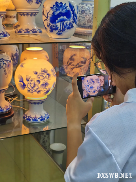 在时光长河里,陶瓷是永不褪色的星辰。红盘上的烫金“福”字,让传统祝福从釉面漫出,温暖岁月;素坯上的纹路,藏着未干的釉色之梦,等待被镜头唤醒。2025年7月11日,“素坯绘梦·瓷韵振兴”志愿服务队团队成员以镜头为舟,在青花涟漪里打捞诗意,将这些陈列的陶瓷,那些历史与当下的对话、泥土与火焰的情歌,都收进光影。这不是简单的记录,而是一场精心的宣传:镜头的语言,让古老技艺在更多人眼中重焕鲜活,让陶韵青瓷的风华,被看见,被记住,被热爱。