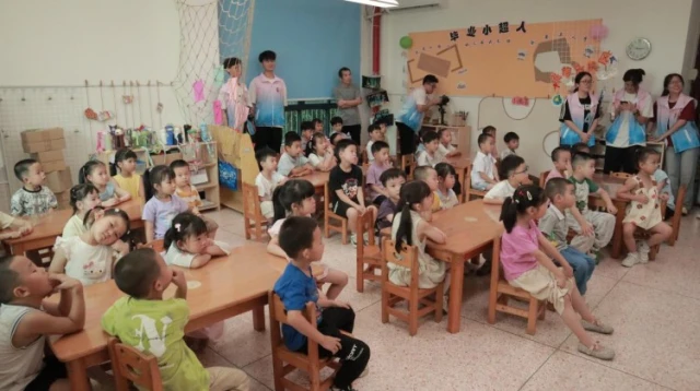 图为新“韩”路实践团成员给幼儿园孩子讲畲族文化(黄悦涵供图)