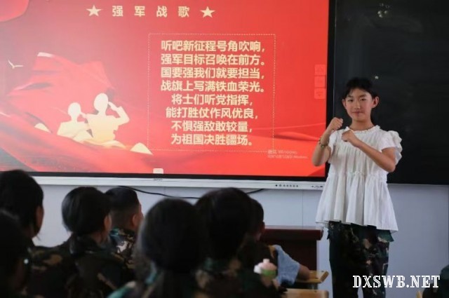 转机出现在实践队员一句示范——“听吧新征程号角吹响!”配合挺拔的军姿与激昂的语调,孩子们的眼神瞬间被点亮。实践团队敏锐抓住这一信号,果断调整策略:大幅精简背景讲解,将课堂核心转向“唱”、“动”与深度参与。教《强军战歌》,强调声音的力度与气势,辅以击掌打拍,引导想象战士豪情;教节奏鲜明的《1234歌》,融入踏步与口号呼应(“1234”时全班跺脚)。更富创新性的是,实践队员鼓励孩子们走上讲台,尝试担任小小指挥家。在队员的引导下,几位跃跃欲试的学生模仿着指挥手势,全情投入地挥动双臂,引领全班齐声高歌。台上小指挥专注的眼神,台下同学们整齐响亮的应和,将课堂气氛推向高潮。实践队员深切体会到:“青春的活力与课堂纪律并非对立,关键在于找到承载活力、凝聚人心的形式。让孩子们成为课堂的主角,他们的热情与责任感自然成为最好的秩序维护者。”
