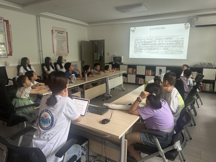 下午的课程环节中,志愿者齐潇莹化身“礼仪小老师”,为孩子们带来了一堂内容丰富、互动性强的礼仪文化课。她以通俗易懂的语言切入主题,从礼仪的概述、重要性、起源到分类,层层递进,深入浅出。