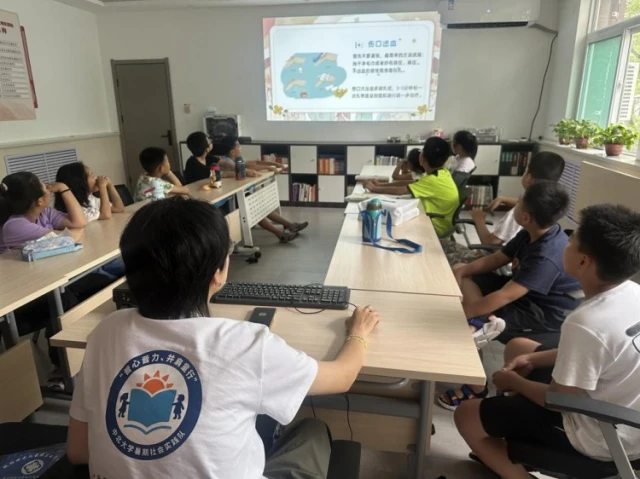 2025年7月7日,中北大学经济与管理学院“晋心晋力,并肩童行”暑期社会实践队走进太原市杏花岭区桃园二巷社区,为20余名小学生带来“家庭安全大侦探”与“应急救护情景模拟”主题课程。活动以“理论+实操”的创新模式,系统普及居家安全知识与急救技能,推动安全意识在少年儿童群体中入脑入心,切实为儿童成长筑牢安全屏障。