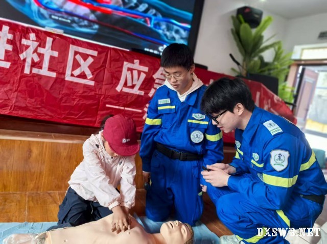 图为志愿者为当地居民演示心肺复苏 陈佳兴供图