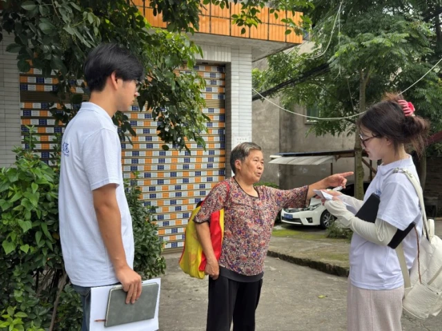 图为实践团成员走访江姐村政府附近村民。李娜 供图