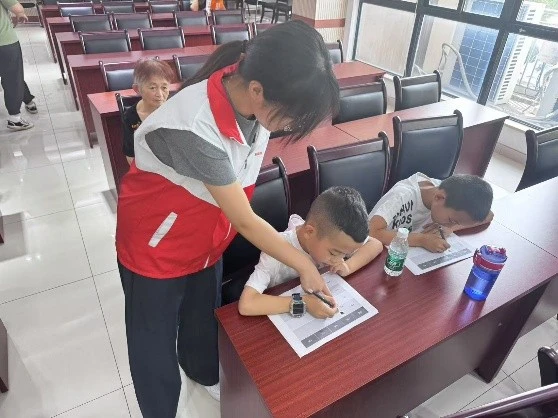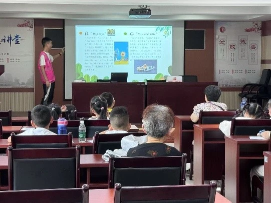 活动当天,社区活动中心热闹非凡,孩子们早早到场等候。志愿者们以英语自我介绍破冰后,通过多样化互动环节点燃学习热情:用图文卡片教授“hello”“thank you”等基础词汇,搭配情景模拟让孩子们轻松掌握表达;带领学唱节奏明快的英文儿歌,让语言学习融入音乐律动;开展“单词接龙”竞赛,为表现优秀的孩子发放贴纸奖励,现场笑声与掌声不断。