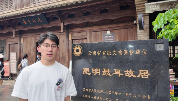 5 日上午,实践团首站抵达昆明聂耳故居。这座省级文保单位内,泛黄的照片与手稿,无声诉说着音乐家短暂而炽烈的一生——从昆明奔赴上海,聂耳以笔为刃,将民族的危亡呐喊熔铸进《义勇军进行曲》的旋律,使之成为唤醒国魂的时代强音。“伫立故居石板路,笔尖谱曲的沙沙声仿佛在耳畔回响。”成员凝视展品,感慨万千。此行不仅了解了聂耳深入市井军营汲取灵感的细节,更深刻领悟:“‘血肉长城’绝非虚言,那是民族存亡之际万众一心的钢铁意志。”