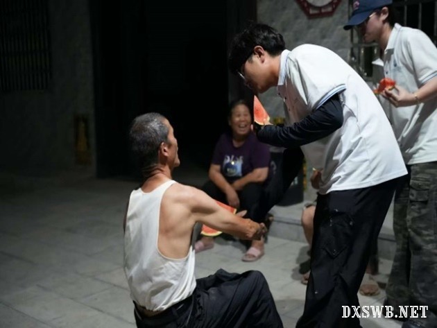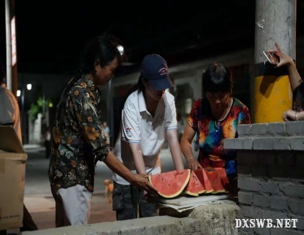 绘制间隙,村民们也纷纷围观,对实践团的工作表示出极大的兴趣与赞赏,不时传来阵阵掌声与欢笑声,让整个周一村充满了温馨与和谐。随后团队取出准备好的西瓜,随后将西瓜切块,分发给围观的老人与孩童。递瓜时的笑意、接过后的道谢,混着西瓜的清甜和墙绘的鲜活,在日头下慢慢酿出暖融融的味来。简单的分享,此刻倒成了串起人情的线,让这面墙下的热闹,更添了几分烟火气的亲昵。增进了邻里之间的感情,促进了乡村和谐氛围的营造。