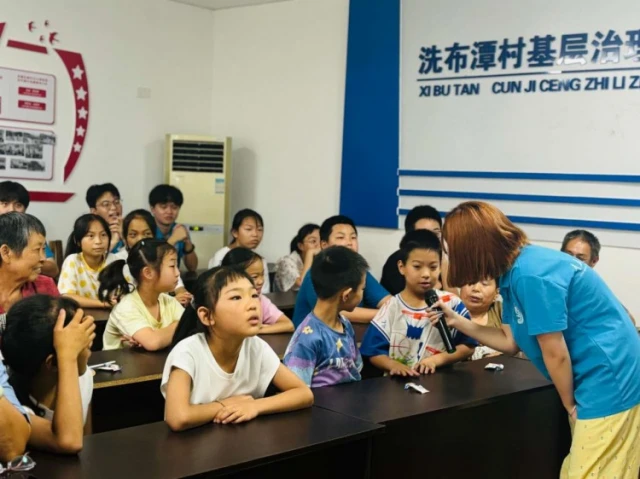 学子们利用暑假时间,为洗布潭村的孩子们和村民们带来生动有趣的普通话教学。从基础的拼音发音到日常对话练,用通俗易懂的方式帮助学员们掌握普通话的精髓。同时,他们还组织了一系列丰富多彩的文化活动,如辨析生僻字、普通话朗诵比赛、绕口令、纠正儿化音等,让居民和小朋友们在轻松愉快的氛围中感受普通话的魅力。