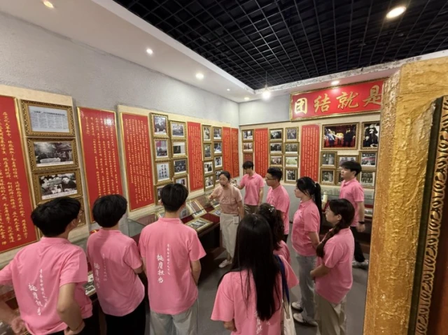 7月16日清晨,青耘实践团成员们抵达烽火村。一下车,古朴的村貌与浓厚的历史氛围扑面而来。村口的标识牌,默默诉说着这个村庄承载的岁月故事。青耘实践团的第一站,是烽火村的村史陈列室。陈列室内,老旧的农具、泛黄的照片、珍贵的文件依次陈列,像一部无声的纪录片,还原着烽火村往昔的奋斗场景。