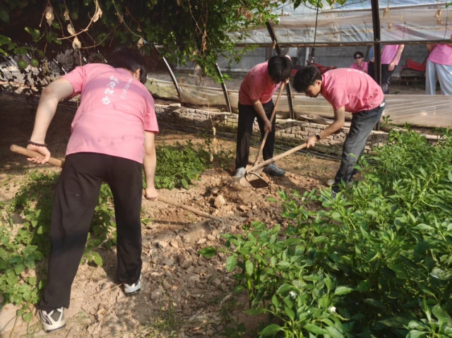 图为实践团在嘴巴公社种植棚内铲土劳动。 王琦 供图