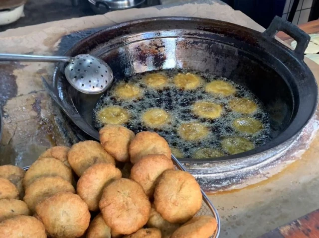 刚出锅的油饼烫得没法下嘴,我们捧着它来回倒手,芝麻的香气顺着热气往鼻子里钻。咬开酥脆的外皮,内里却软得能拉出丝,混着淡淡的碱香。"我爸以前总说,炸油饼的面要'三醒三揉',就像过日子,得有耐心。"李叔的儿子正在旁边学手艺,年轻人手法生涩,却学得格外认真。