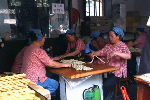 麻花铺的刘大爷是个沉默的手艺人,他坐在竹编椅上,双手捏着面团搓出匀称的长条,手腕一绕便拧出漂亮的花。"这麻花要'紧三拧',才够脆。"他的手指关节粗大,却灵活得像有魔法,面团在掌心转眼变成麻花坯子。