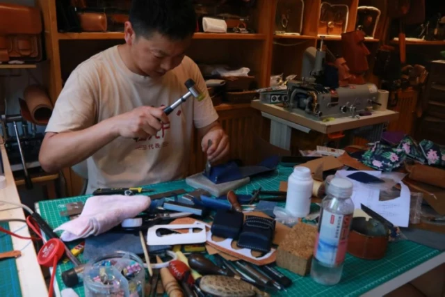 我们试着学打孔,锥子刚碰到牛皮就歪了方向。赵师傅笑着接过工具:“力道要匀,就像你们读书,急不得。”他说,前两年村里办了非遗工坊,有年轻人来学,但大多熬不过三个月,“这活累,夏天汗泡着,冬天手冻着,得真喜欢才行。”