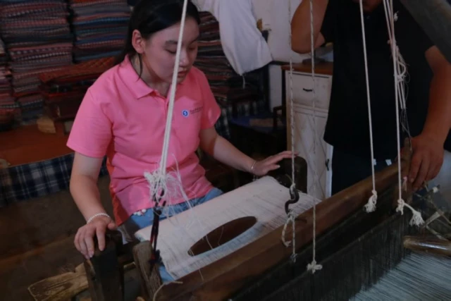 图为郭同学在学习纺织工艺。薛佳聪 供图