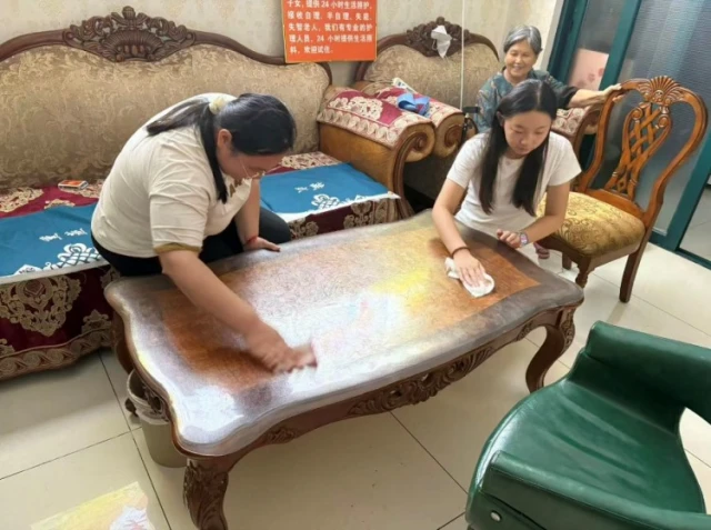 成员们主动承担起打扫卫生的任务。他们手持扫帚、抹布,认真清扫养老院的每一个角落,擦拭每一扇窗户、每一张桌椅。灰尘在他们的努力下渐渐消散,养老院变得干净整洁,为老人们营造出舒适的生活环境。