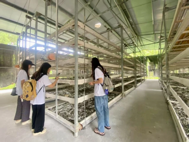 队员考察蚕房并拍摄短视频