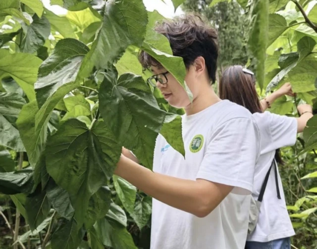 助力乡村发展,首当其冲便是产品质量问题。暑期正是气温最高的时候,面对下院山村养蚕基地中的桑叶病虫害频发、杂草横生等困难,村民也苦不堪言。团队成员协商制定方案,在下乡期间,积极为村民们排忧解难。通过科学选取农药,精准喷施,既能有效抑制虫害蔓延,又避免农药滥用。同时分片包干清理杂草,为作物生长清理障碍。在田间实践中,科技防治理念悄悄融入农民生产习惯。