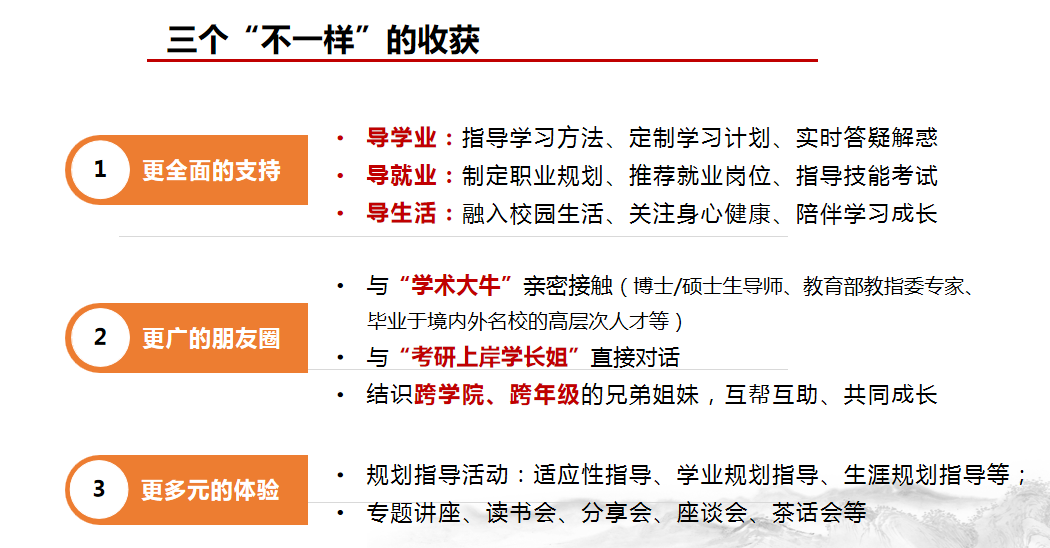 本导师组共有博士5位,2位博导,全组导师将以指导学生考研升学为主线,考公、考编指导为辅线,致力于指导学生考研数学、英语及考研专业课上的指导,并在报考学校的选择、考研面试复试上给予指导与咨询,以及硕士导师推荐联系等,陪伴学生成长。