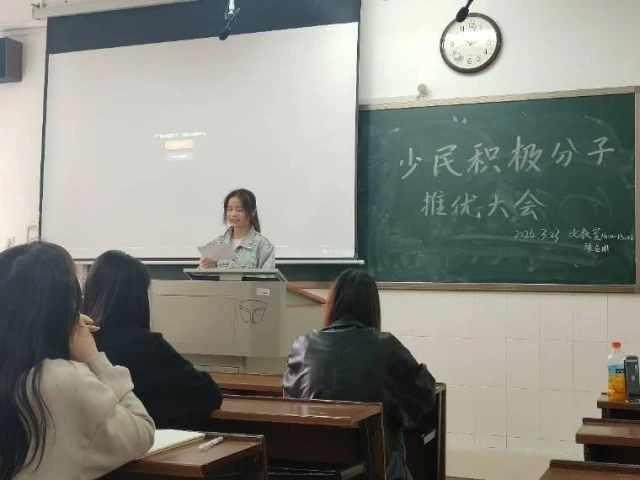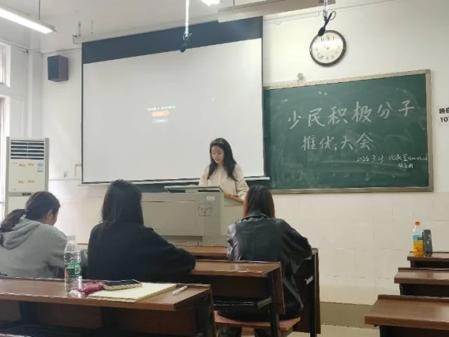 (通讯员 包香辉 刘洁盈 陈静怡)2024年3月23日下午2点,在景德楼中栋113教室,湖南师范大学公共管理学院少数民族团支部举行了入党积极分子推优大会。此次会议由少数民族团支部团支书刘洁盈主持,宣传委员包香辉及组织委员陈静怡协助组织。会议开始,团支书刘洁盈宣读会议注意事项,并宣布会议开始。接着,由竞选此次入党积极分子的同学依次发言,分别是:胡桥英、石雨欣、汪佳华、胡桂焱、李荣、符美佳、覃悦、罗敏、陈静怡,共9名同学。