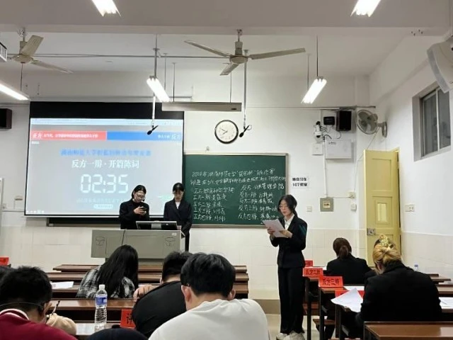 4月12日晚,公共管理学院辩论队(以下简称“公管院辩论队”)在景德楼中栋113参与了2024年度湖南师范大学校园“蓝田杯”青年辩论赛第四轮比赛。此次比赛辩题为“在当代,文学翻译中的“创造性叛逆”利大于弊/弊大于利。公管院辩论队持方为反方,上场辩手为一辩23级万梓妍、二辩21级李青筱、三辩20级钟锦涵、四辩22级崔蓝心。此次比赛的正方为教育科学学院辩论队(以下简称“教科院辩论队”)。