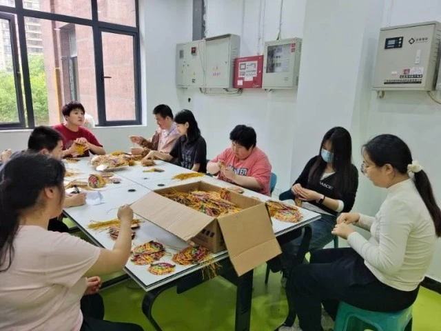 为了提高智障朋友们的动手能力和灵活度,本次活动主要内容为志愿者带领智障人士帮助怡智家园编制新挂牌。智障人士动手能力和灵活度比较弱,在机构老师的耐心指导和志愿者们的温暖陪伴下,克服了困难,用绳子和纸牌编制出了一个个精美的挂牌。活动全程有序进行,氛围温暖有爱,活动圆满结束。