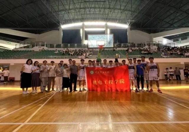 2024年5月16日,阳光明媚的午后,武汉东湖学院的体育馆内人声鼎沸,气氛热烈。一场激烈的男子篮球联赛总决赛正在这里如火如荼地展开,吸引了众多师生的目光。经过激烈的角逐,机电工程学院代表队以65:43的优异成绩战胜继续教育学院,成功夺得本次比赛的冠军。