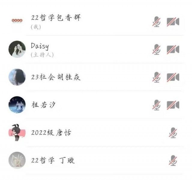 参与此次会议的人员有:执行负责人22级哲学包香辉,及五名企划部干事,分别是22级哲学丁璇,22级哲学徐艺,22级哲学唐恬,23级社会学祖若汐,23级社会学胡桂焱。负责人22级社会学唐萱请假。