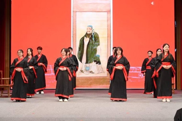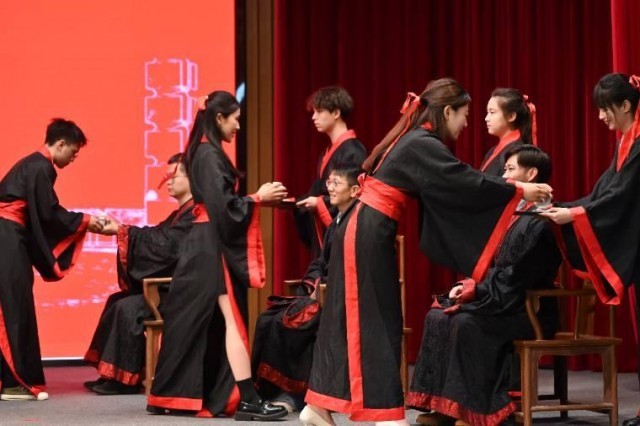“善之本在教,教之本在师。”人文学院以传统礼仪,敬谢师长教诲之恩。院长吴慧娟教授以三训与诸生共勉:一训曰诚实守信,品行高洁;二训曰勤学不辍,博采众长;三训曰砥砺前行,勇攀高峰。希望毕业生们心怀家国,志在四方,以奋斗之笔绘就人生之华章。