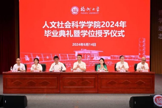 6月14日上午,人文社会科学学院2024年毕业典礼暨学位授予仪式在旗山校区图书馆博学厅隆重举行。院党委王群书记、院长吴慧娟教授、院党委副书记陈永福教授、副院长林胜教授、副院长陈丽君教授、院长助理甘满堂教授、院长助理何朝银教授出席典礼,校友代表、教职员工、2024届毕业生以及部分家长代表共同参加典礼。典礼由院党委副书记陈永福教授主持。