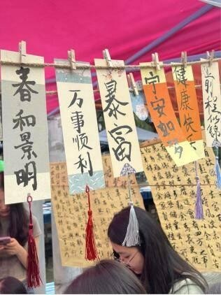 为了让更多同学亲身体验书法的乐趣,活动特设了书签制作环节。同学们纷纷拿起毛笔,蘸上墨汁,在书签上写下自己心中的话语,有对春天的赞美,有对他人的祝福,还有对未来的憧憬。最为引人入胜的是看图猜诗环节,参与者和提问者一问一答,碰撞出诗词的火花。这不仅考验了参与者的诗词储备,更让大家在轻松愉快的氛围中感受到了中华文化的博大精深。
