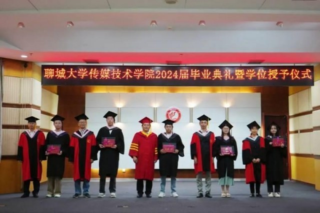 为庆祝2024届毕业生顺利完成学业,表达对毕业生的祝福和期望,激励他们以崭新的面貌去迎接未来的挑战,6月16日,传媒技术学院于聊城大学西校区图书馆报告厅隆重举行2024届学生毕业典礼暨学位授予仪式。传媒技术学院党委副书记、院长郭峰,传媒技术学院党委副书记、副院长赵勇,传媒技术学院副院长秦建波,学院全体辅导员、毕业班班主任、教职工代表,2024届全体毕业生以及部分家长代表出席了此次活动。