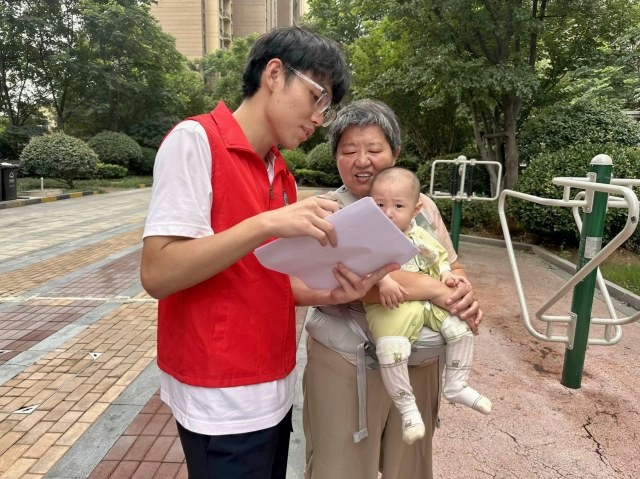 实践团队志愿者采访社区住户。大学生网报通讯员 颜富琪 供图