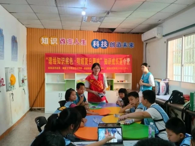 来自福建卫生职业技术学院的三下乡实践小分队在7月1号去往闽侯南通镇为参加夏令营小朋友教学。