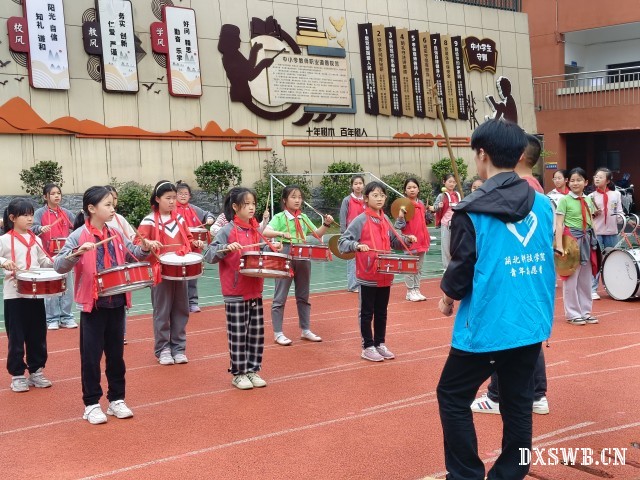 2024年4月17日,志愿者张秋飞和秦璇前往咸宁市第三实验小学进行音体美志愿服务,本次志愿服务主要帮助编排方阵,由张秋飞协助老师完成教学,秦璇负责维护现场秩序。
