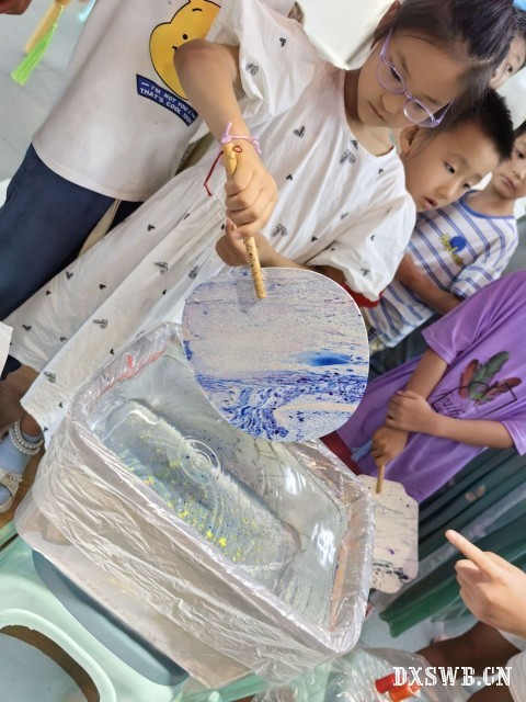 图为孩子们在支教队成员帮助下完成漆扇制作。曹越 供图