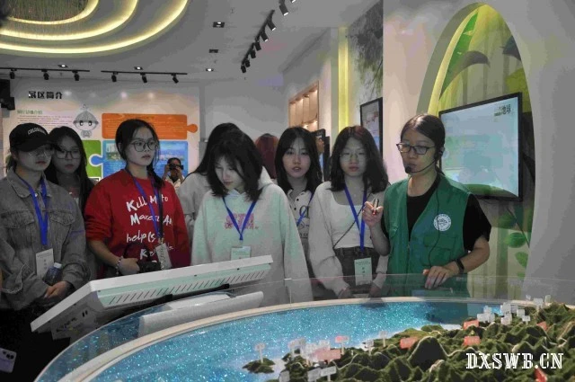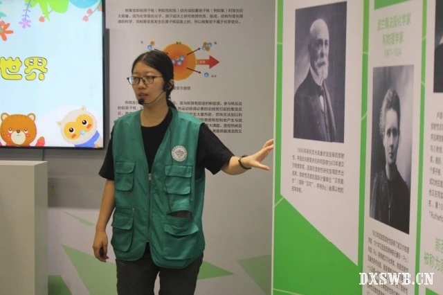 图为讲解员在为两个支部成员进行核能环境长期发展的科普