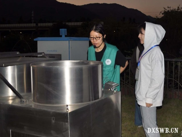 而后由工作人员带领同学们前往基站站房平台参观采样装置,为同学介绍大流量气溶胶采样器及碘化钠能谱仪的工作原理,并将干湿雨水采样器作为介绍重点进行实际操作展示。整个科普教育环节内容充实、氛围活跃,同学们收获颇丰。