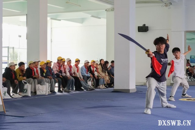 在综合教学楼B区一楼的武术馆,孩子们第一次近距离欣赏了武术技艺表演,他们眼中满是兴奋与欢快。表演中,体育与健康教育学院的学子们用扎实稳健的马步、虎虎生风的出拳、刚劲有力的踢腿向小朋友们展示中华武术的精髓所在。