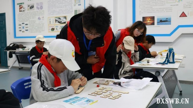在趣味物理科普小讲堂里,奇妙的科学世界正徐徐展开。两位志愿者老师为小学生们揭秘“A4纸折纸不能超过七次”现象的巧妙原理,启发他们在实践中思考问题的本质。在认真观看科学视频后,同学们一起讨论问题,相互交流,积极回答志愿者老师的问题。志愿者小老师还带领孩子们拼装吉普车、飞机、七彩木屋、红绿灯等小玩具。