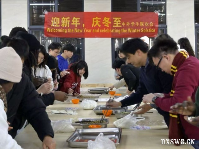 岁末寒冬,冬至悄至。2024年12月21日,安徽中医药大学在留学生教育方面开展了一系列丰富多彩的活动,不仅促进了留学生对中国文化的认同,更传递了浓浓的中国情怀与贴心的心理关爱。当冬至的传统习俗遇上多元的留学生群体,这不仅是一场欢乐聚会,更是留学生们在文化认同道路上的重要一步,大家在活动里体验中国情怀,享受中国传统文化营造的温馨氛围。人文与国际交流学院党总支书记金晓琴、副书记彭青和亲临食堂,与留学生们手把手教学包饺子,致以亲切的问候和祝福。饭后同约校史馆合影。随后精彩的文艺表演如期展开,中国功夫、相声曲艺连番上阵,留学生们则带来了古诗词朗诵,展现出对中国文化的浓厚兴趣与深入学习成果。多元文化的碰撞与融合,赢得了现场观众的阵阵掌声。