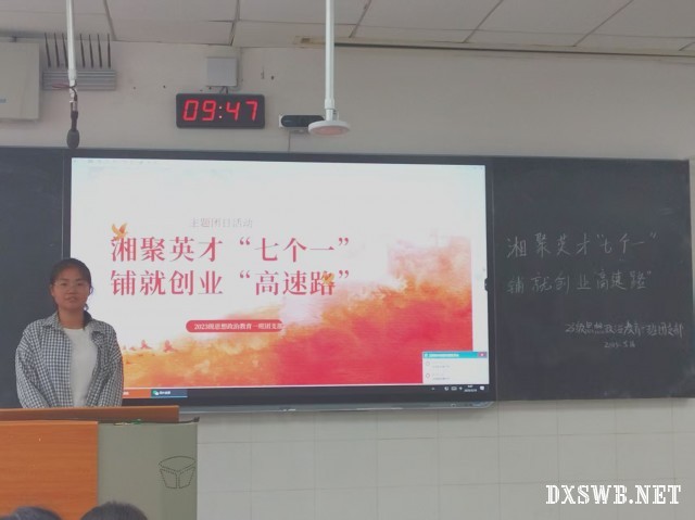 (通讯员:彭沁 胡艳芳 谢婉珍)为激发青年学生创业热情,助力创业梦想起航,5月16日上午,2023级思想教育一班举办了以“湘聚英才‘七个一’,铺就创业‘高速路’”为主题的团日活动。
