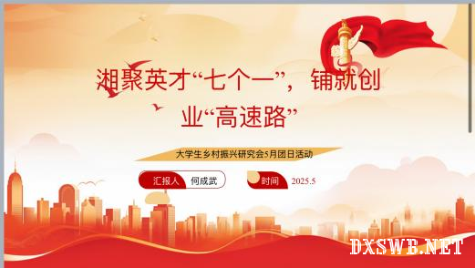 (通讯员 张惟斌 刘敏佳 付春利 胡元浈)2025年5月17日,湖南师范大学公共管理学院大学生乡村振兴研究会以“湘聚英才‘七个一’,铺就创业‘高速路’”为主题,举办五月团日活动。活动聚焦湖南省“七个一”创业扶持政策,通过政策解读与案例剖析,引导青年学子把握乡村振兴机遇,激发创新创业动能。