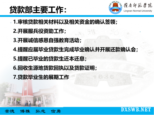 贷款部干部彭航介绍了贷款部近期的工作,主要从以下方面进行讲解:贷款部的主要工作;服兵役资助工作要求;回收贷款回执相关工作要求;如何申请生源地助学贷款;生源地助学贷款线上线下续贷流程;注意事项以及答疑。同时,详细展示了申请和续贷的相关流程。