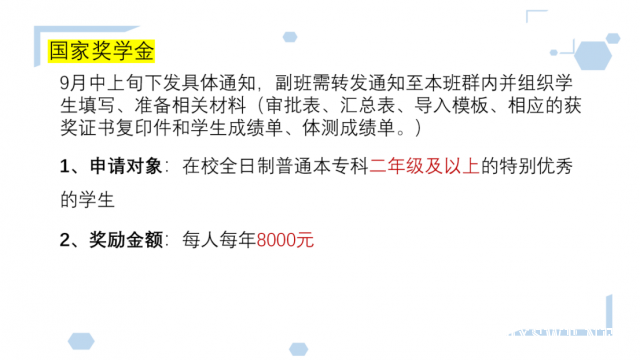 综合部干部蔡静霖介绍了综合部近期的工作,主要从以下方面进行讲解:国家奖学金的申请对象及申请标准;填写国家奖学金申请审批表的注意事项;国家奖学金导入表的填写注意事项。并详细展示了国家奖学金审批表与导入表的模板,同时强调了相关注意事项。