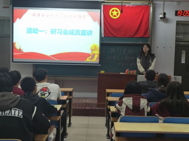 为深入学习贯彻党的二十届四中全会精神,教育引导团员青年坚定理想信念、勇担时代使命,10月30日19:00,24070242团支部组织全体成员开展了以“深学全会精神,青春建功强国——学习贯彻党的二十届四中全会精神”为主题的团日活动。本次活动主要包括研习会成员讲解、签署《青春建功践诺书》及支部成员学习心得交流三个环节。