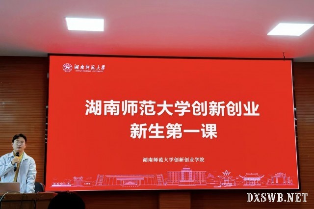 杨於道以“湖师启航·创见未来”为题,通过“敲门人、守夜人、领路人”三幕故事,分享了自己从竞赛新手成长为国家级大创项目负责人并荣获湖南省“金种子”金奖的经历,系统梳理了“互联网+”“挑战杯”等赛事的报名时间、选题策略、团队组建及答辩要点,归纳出“切口小、路线实、展示活”的实战策略,并系统介绍了学校支持创新创业的七大举措及相关政策。他也进一步阐释了学校构建“课程学习—项目实践—竞赛锤炼—成果转化”四位一体培养体系,鼓励新生善用学校资源,在创新实践中实现自我提升。
