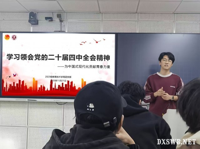 为深入学习贯彻党的二十届四中全会精神,引导支部成员将理论学习与专业实践相结合,11月21日,教育学院2023级教育技术学班团支部以“学习领会党的二十届四中全会精神”为主题开展了一场理论学习交流会。本次活动特别邀请杨宁老师莅临指导,支部成员积极参与,共同掀起理论学习热潮。