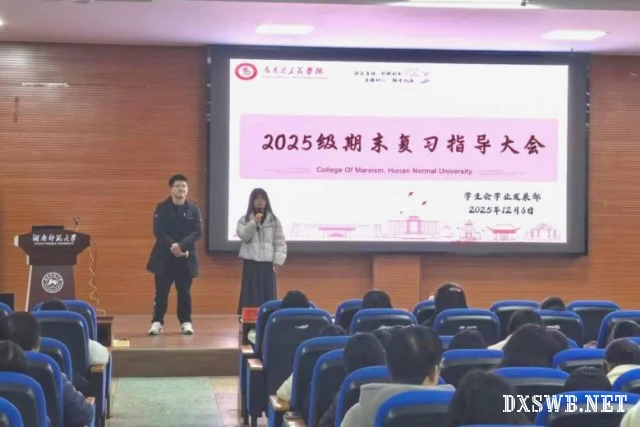 (通讯员 王玉珍 樊俊青 丁子涵)为帮助2025级同学梳理知识系统、明确备考方向以及缓解考试压力,湖南师范大学马克思主义学院学生会学业发展部于12月6日晚在张公岭校区图书馆报告厅举行2025级期末复习指导大会。此次指导大会由学业发展部志愿者邹慕晗进行主持,2024级思想政治教育三班黄磊、喻佳欣主讲,2025级学生广泛参与。